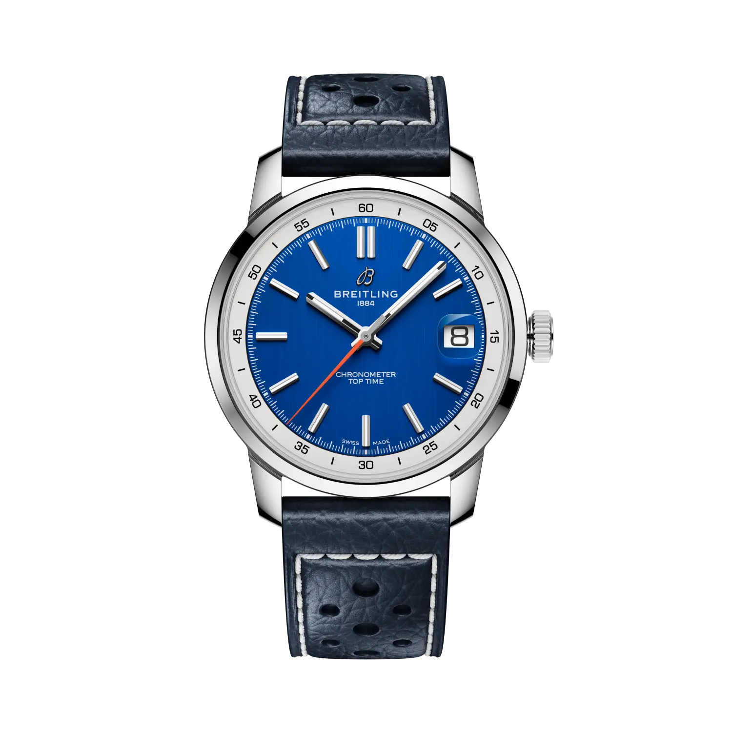 New for 2025, the Breitling Top Time B31 introduces the brand’s Manufacture B31 movement in a sleek 38 mm case that stays true to the Top Time’s bold heritage. Retro automotive-inspired dial details meet contemporary proportions, creating a universal fit for any wrist. Available in green, blue, or a white and sky-blue two-tone, each model pairs with either a three-row stainless-steel bracelet or a perforated calfskin strap. Designed for those who value style and spontaneity, the Top Time B31 celebrates individuality and the spirit of the open road.