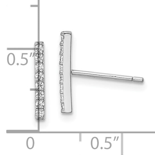 Sleek and contemporary, these sterling silver bar post earrings are rhodium-plated for extra shine and durability. Each earring features sparkling cubic zirconia stones set along the polished bar, creating a minimalist yet elegant design. Perfect for daily wear or adding a subtle sparkle to any outfit.
