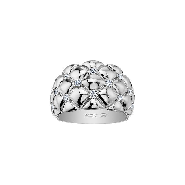 14K White Quilted Domed Canadian Maple Leaf Diamond Ring