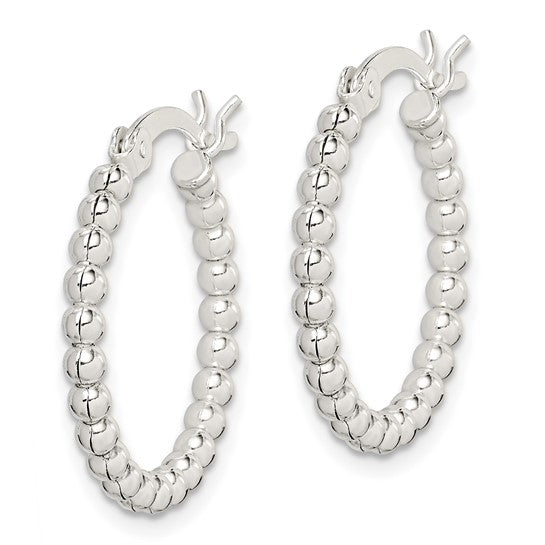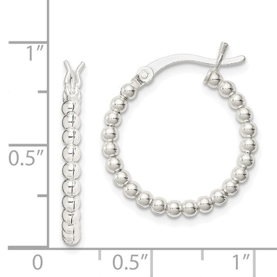 Classic and versatile, these sterling silver hoop earrings feature a polished beaded design with a 2mm width. Lightweight and comfortable for daily wear, their subtle texture adds a touch of elegance to any outfit. Perfect for layering with other earrings or wearing solo, these hoops are a timeless addition to any jewellery collection.