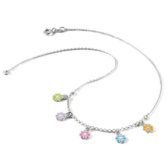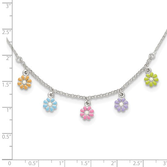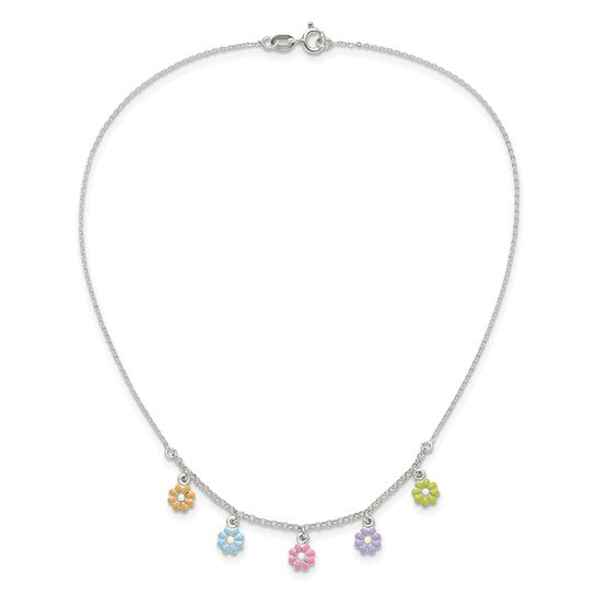 Sterling Silver Enameled Flowers Children's Necklace