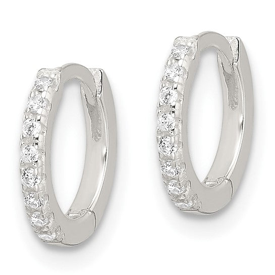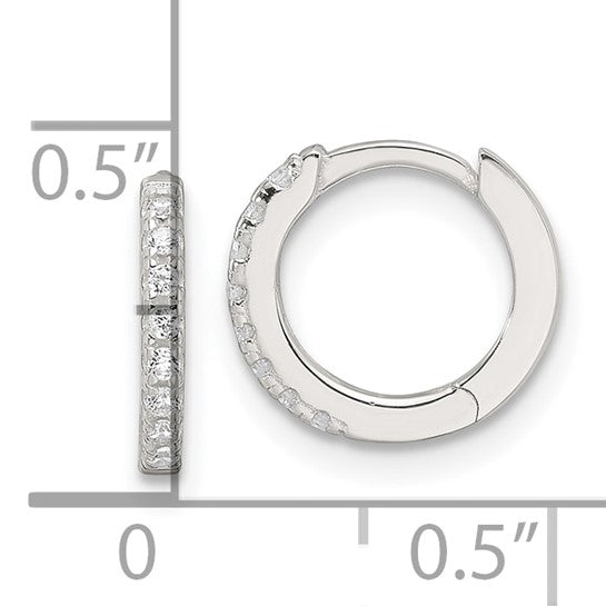 Sterling Silver Polished CZ Hinged Hoop Earrings