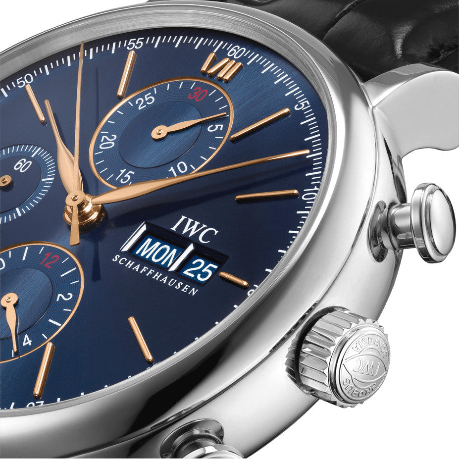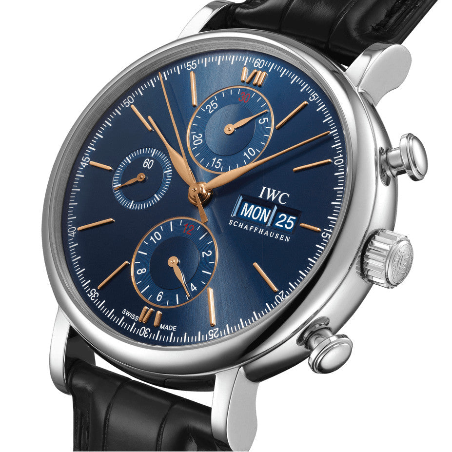 The Portofino Chronograph is now available in an unlimited edition, showcasing a refined stainless steel case paired with a striking blue dial that enhances its elegant design. Measuring 42mm, this timepiece balances classic aesthetics with modern functionality. It features a durable steel casing complemented by a black leather strap for a sophisticated look suitable for any occasion. The chronograph function allows precise time measurement, while the day and date display ensures practical everyday use. Together, these elements make the Portofino Chronograph a versatile and distinguished choice for discerning watch enthusiasts.