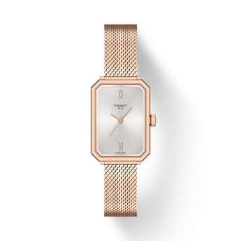The SRV watch is inspired by the Art Deco times, developed in the 1920s. This time is characterised by geometric shapes and abstract patterns, become a dominant style in architecture, interior design, fashion and graphic arts. While the SRV is directly inspired by a model from 1975, that very design was itself a reinterpretation of Tissot’s earlier creations from the 1920s. The SRV’s quartz movement delivers precision that empowers to move forward fiercely and, with the End-of-Life indicator, the SRV anticipates her next move, so she’s always prepared. More than a name, SRV stands for, Sapphire Rectangle V: a faceted sapphire glass with a rectangular silhouette, and the ‘V’ a nod to its 5-bar water resistance, symbolised by the roman number 5. The Milanese bracelet is comfortable, adding finesse to your look.
