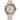 The dial is presented with a sand-blasted beige varnish and includes a date window at 3 o’clock, along with transferred words in brown and black. The OMEGA logo, Arabic numerals, hands, and hour markers are all in PVD grey with a brushed finish, while the white Super-LumiNova improves visibility in dark conditions.