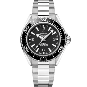 The OMEGA Seamaster Planet Ocean 42 mm blends dive-watch heritage with modern innovation. Its stainless steel case and bracelet pair with a polished black ceramic bezel and matte black dial featuring rhodium-plated hands, indexes, and Arabic numerals with Super-LumiNova. Powered by the Master Chronometer Calibre 8912, it offers exceptional precision and durability. A titanium screw-in caseback with the iconic seahorse emblem completes this robust, refined dive watch.