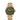 Unidirectional rotatable bezel in 18 ct yellow gold with 60-minute graduated disc in matt green anodised aluminium and gold gilded markings and numerals