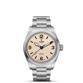 The TUDOR Ranger is a modern expedition watch designed for adventurers. Available in 36 mm or 39 mm, it features a robust case, black or “Dune White” dial with Arabic numerals at 3, 6, 9, and 12 o’clock, and a choice of “T-fit” bracelet or fabric strap. Powered by TUDOR’s Manufacture Calibre MT5400 or MT5402, it combines historical design cues with cutting-edge watchmaking technology. The Ranger embodies durability, precision, and versatility, making it the ultimate companion for those who seek exploration and performance in a tool watch.