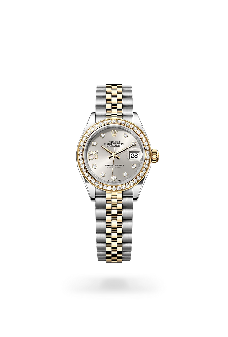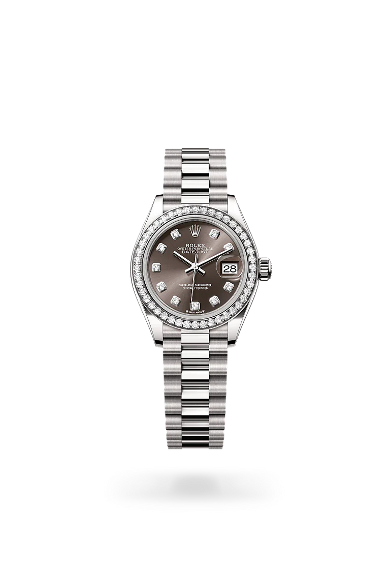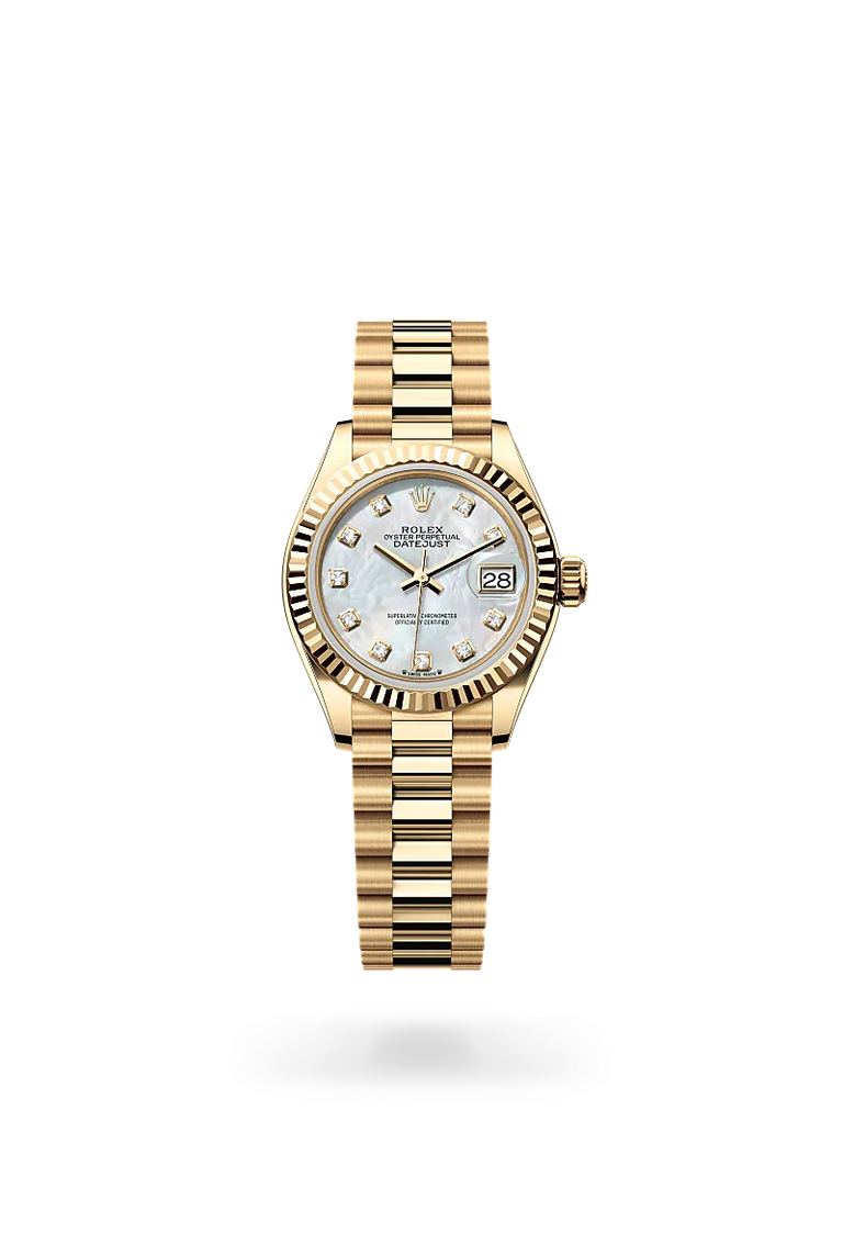 Sunray-finish dials, paved with diamonds or crafted from mother-of-pearl – the Lady-Datejust offers so many choices that wearers can easily find one to reflect their personality. Depending on the version, the Lady-Datejust is available with a domed, fluted or diamond-set bezel.