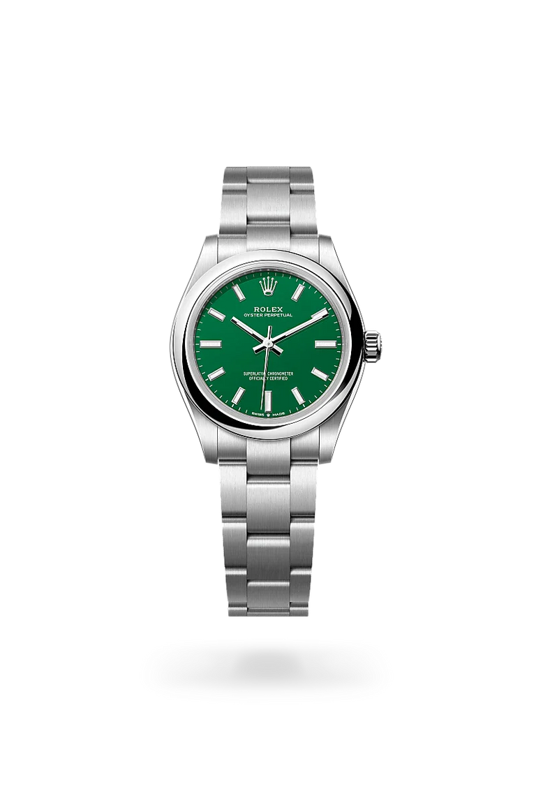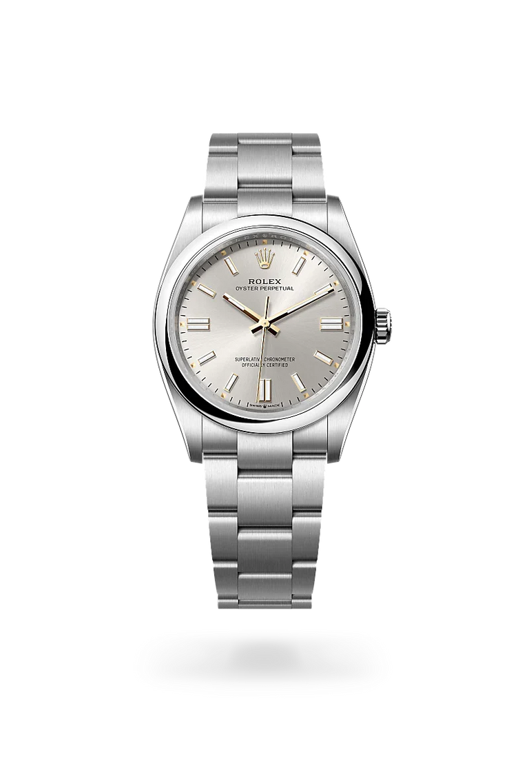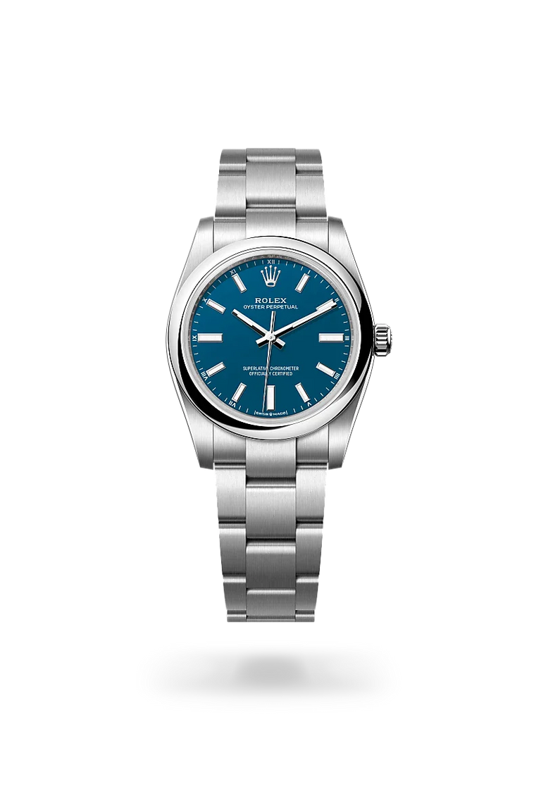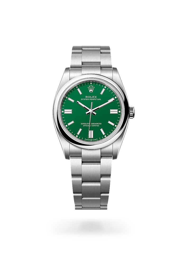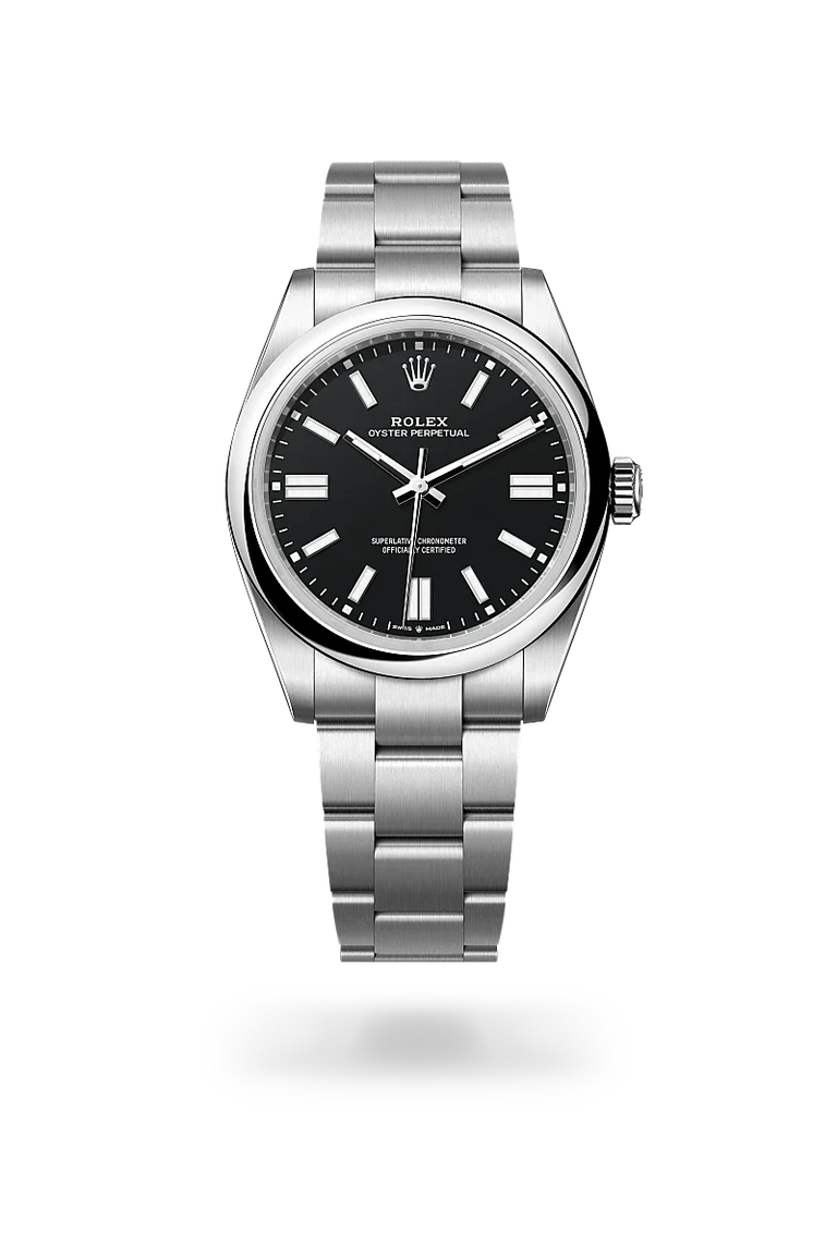 Oyster Perpetual watches are direct descendants of the original Oyster launched in 1926, the world’s first waterproof wristwatch and the foundation on which Rolex has built its reputation. A certified Superlative Chronometer, the Oyster Perpetual features all the key characteristics of the Oyster Perpetual collection – excellent chronometric precision, the waterproof Oyster case, and a mechanical self-winding movement via Perpetual rotor. Understated and elegant, this timepiece is known for its universal, classic style.