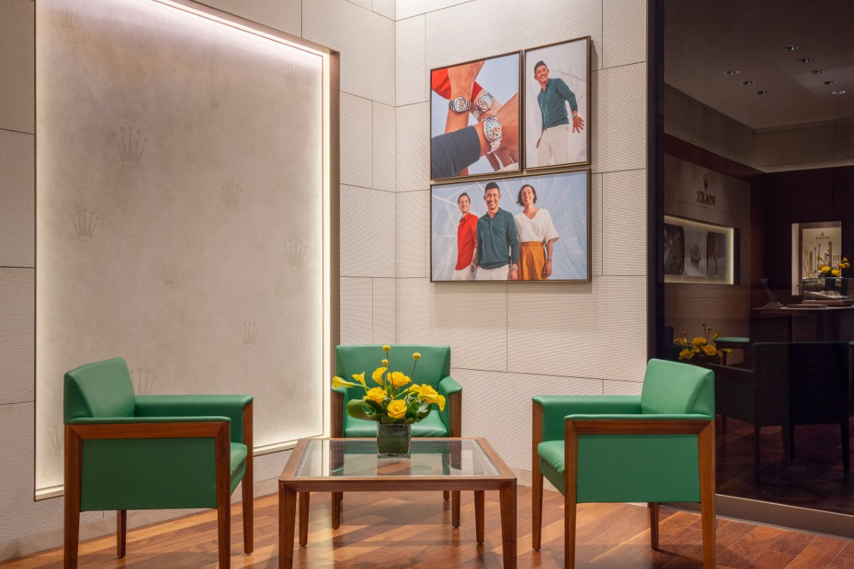 A visit to our Rolex showroom offers professional expertise in an elegant setting that promotes a sense of harmony, discretion, and intimacy with the brand, which has been setting standards in watchmaking for more than a century. Every element of the interior design of our Rolex space features the elegant Rolex aesthetic and radiates the values of the Rolex crown. Excellence, precision and attention to detail emanate from the careful calibration of colours and patterns in the fittings and furnishings.