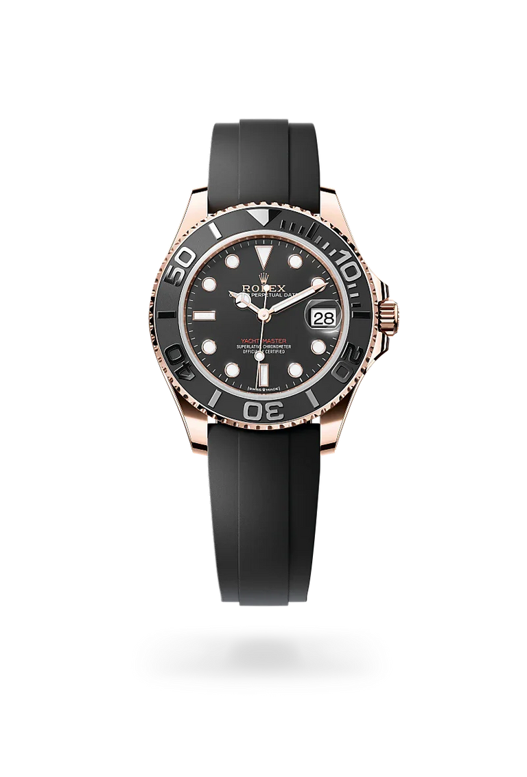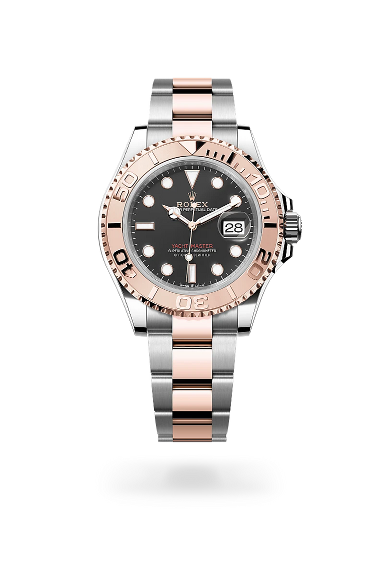 The Yacht-Master 37 and Yacht-Master 40 are available in a Rolesium version (combining Oystersteel and platinum, exclusive to the Yacht-Master range) and in an Everose Rolesor version (combining Oystersteel and Everose gold) with a bezel in precious metal and fitted with an Oyster bracelet. Both models are also offered in 18 ct Everose gold featuring a Cerachrom bezel insert in black ceramic and an Oysterflex bracelet.