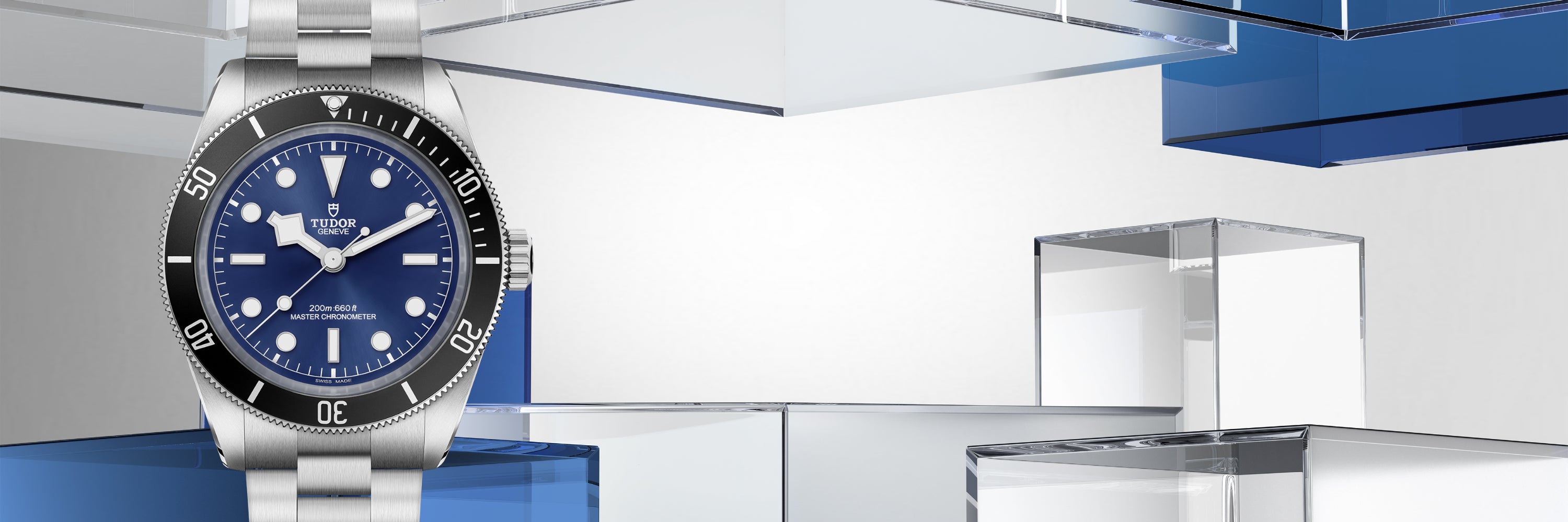 The new TUDOR Black Bay Pro features a distinct opaline dial for enhanced legibility and comes fitted on your choice of three different bracelets or straps: black Jacquard fabric, hybrid rubber and leather or riveted 316L steel.