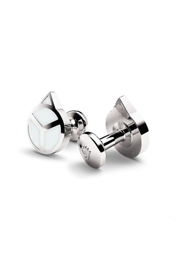 Rolex cufflinks made of 18 ct white gold that echo the hour hand found on Professional Rolex watches, equipped with a Chromalight display.